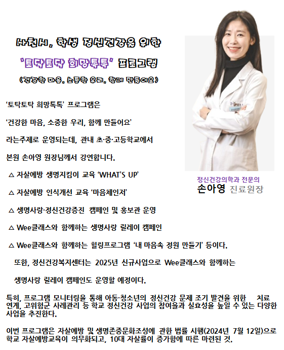 사천시, 학생 정신건강을 위한 ‘토닥토닥 희망톡톡’ > 병원 소식